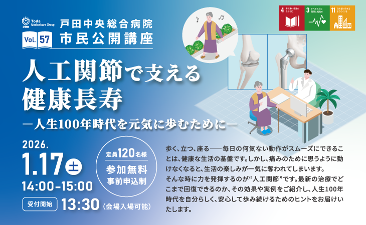 - 2025/12/16 第57回市民公開講座「人工関節で支える健康寿命 ―人生100年時代を元気に歩むために―」のご案内(1/17開催)