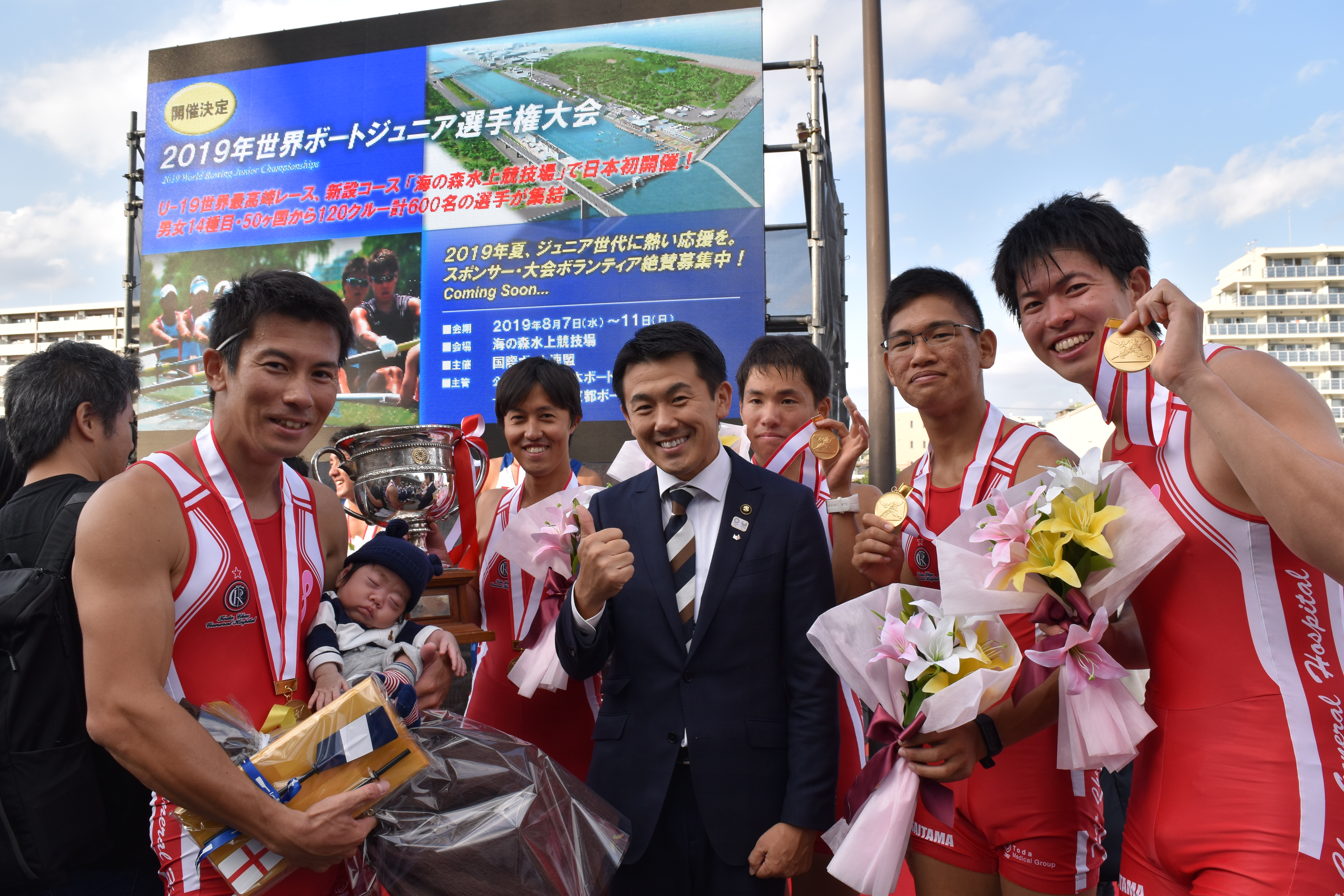 男子舵手つきフォア優勝 田立・勝又・根本・小林・立田