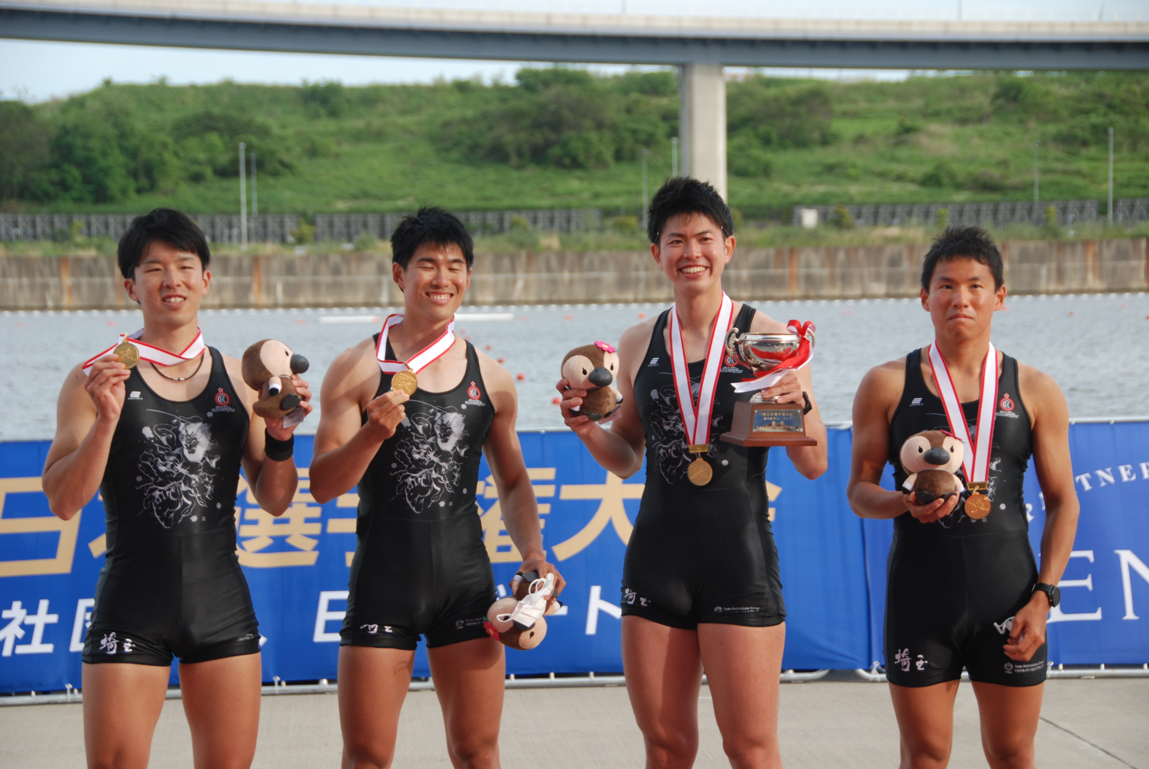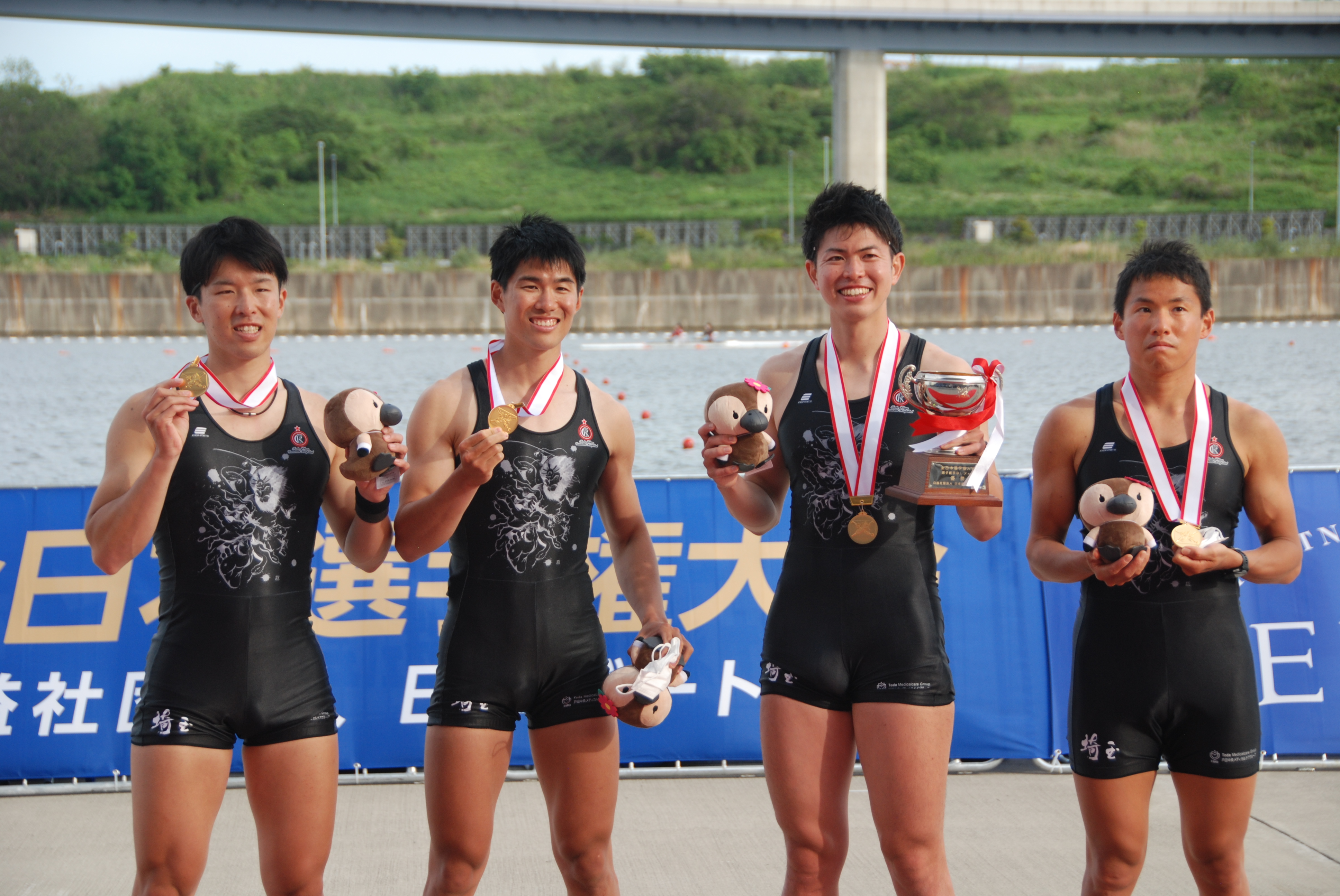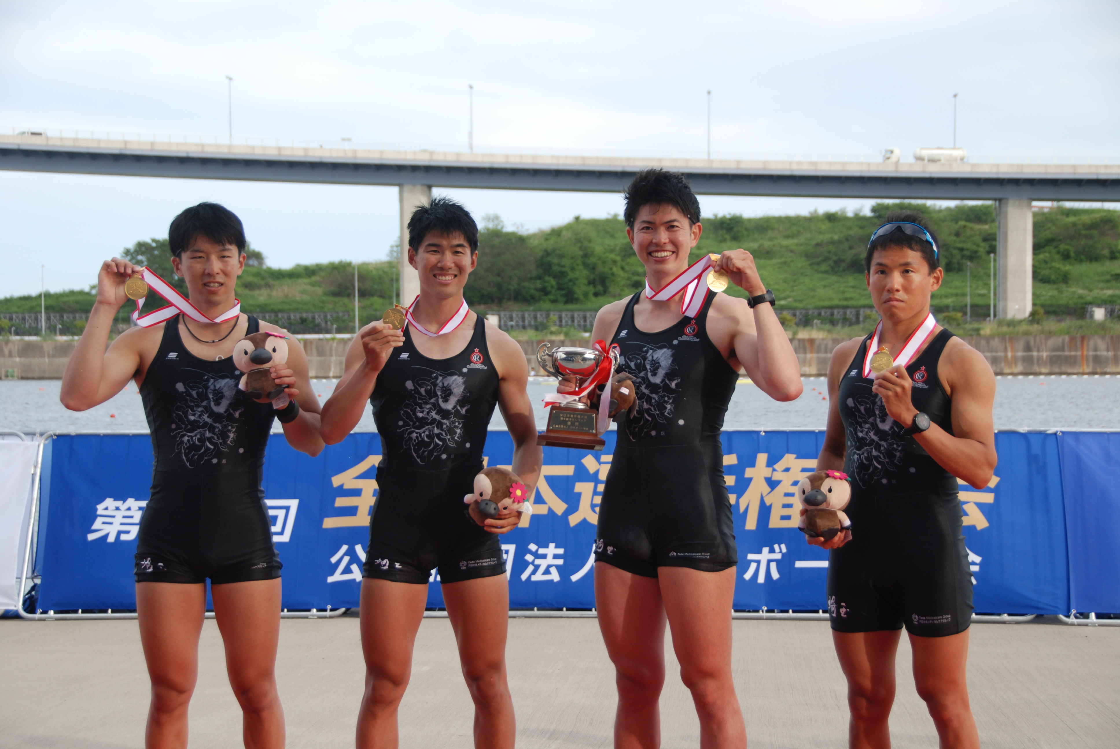 男子フォア優勝 中曽根・植竹・勝又・小林